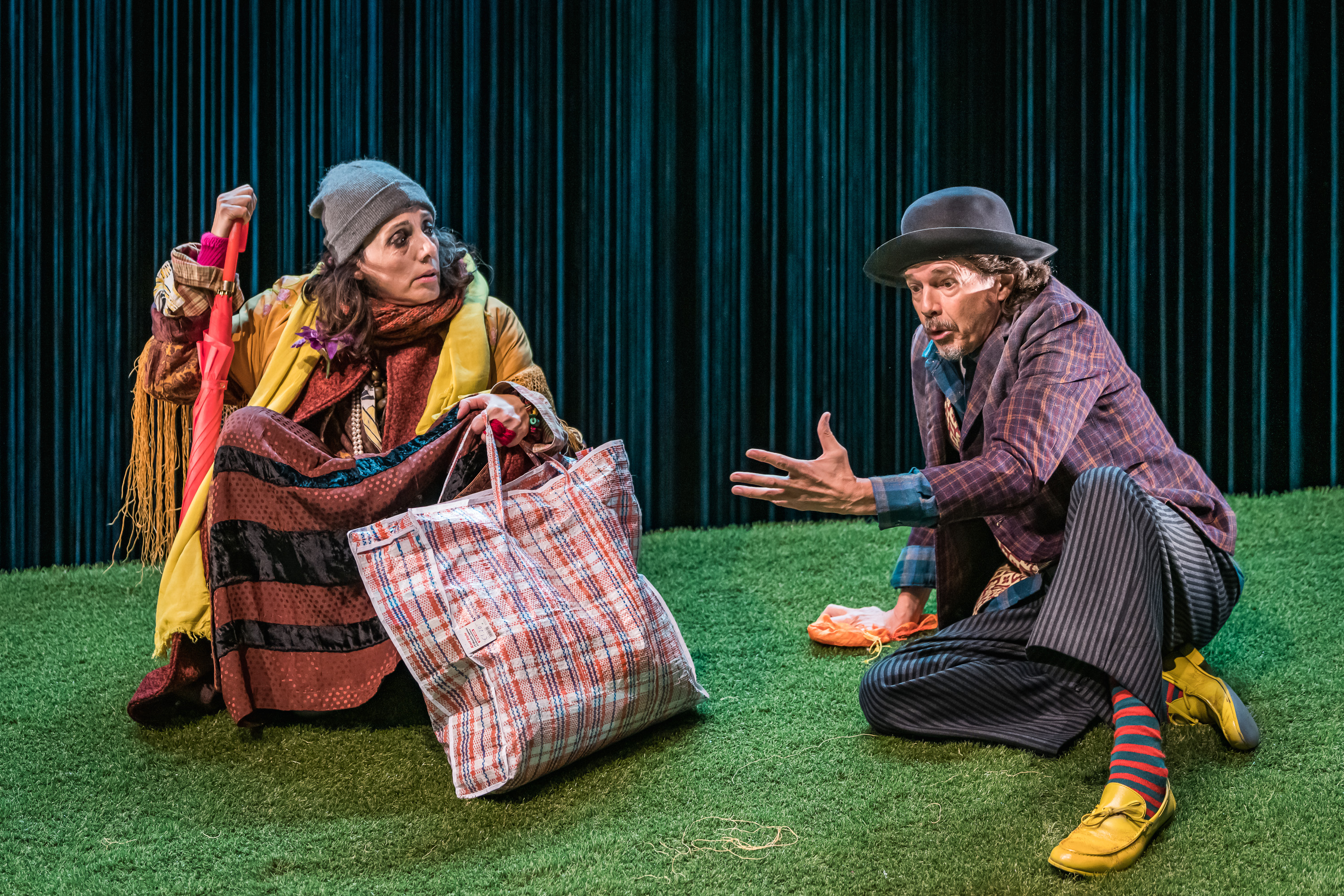 La scena cambia. Il prato viene poggiato su un grande tappeto che identifica l’interno della casa di Aurelie. Scopriamo presto il suo piano grazie alla presenza del Fognaiolo (Jacopo Morra) che mostra alla padrona di casa come aprire e richiudere la botola che porta alle fogne. Giungono poi le due care amiche della donna, Gabrielle (Ester Galazzi) e Constance (Evelyn Famà) e danno vita a un siparietto molto allegro, ma troppo lungo, con tanto di cane impagliato che la sua padrona “finge” di portare con sé per compagnia, pur sapendo che il suo è morto, e la presenza di un uomo misterioso ma invisibile. Tra urla e risate scomposte Aurelie riesce a confidare alle due amiche quello che sta per accadere e decidono insieme di metter su un processo simbolico contro tutti quelli che si vendono al Potere e ai Soldi. Il Cenciaiolo è l’accusato che imbastisce uno dei discorsi dei tre uomini di cui all’inizio, togliendosi a un tratto i suoi cenci e mostrandosi in giacca e cravatta, assolutamente convincente tanto da destare dei dubbi sulla sua vera natura.